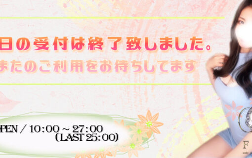 最新のご案内時間はお電話にてお問い合わせ下さい。【営業時間 10:00~27:00 (最終受付 25:00)】